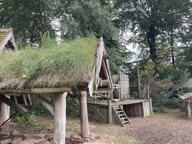 Die Kinder durften selbst kreativ werden: Sie fertigten Lederbeutel an, knüpften Armbänder, gossen einen eigenen Zinnanhänger, bearbeiteten Holz und verzierten ein Brettchen mit dem Wappen des Mittelalterdorfes. Auch das Brotbacken gehörte zum Programm. Das frisch gebackene Brot schmeckte am Abend beim gemeinsamen Grillen besonders gut. Ein echtes Highlight war die große Hütte voller Heu, in der die Kinder nach Herzenslust spielen konnten.
